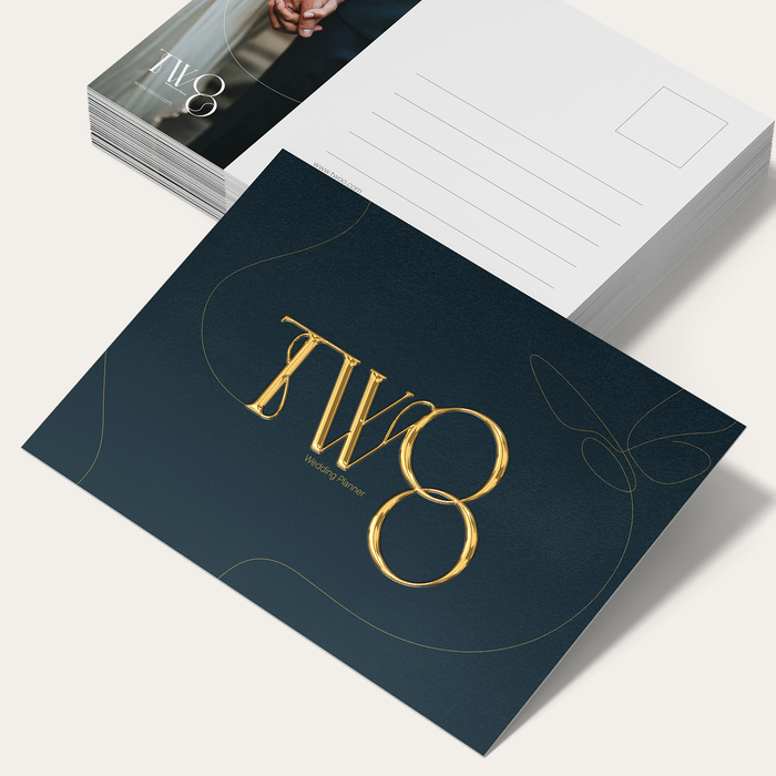 Velvet soft touch lamination gives gold foil postcards an elegant look and feel. Think of it as the red carpet for your design but without the associated price tag.